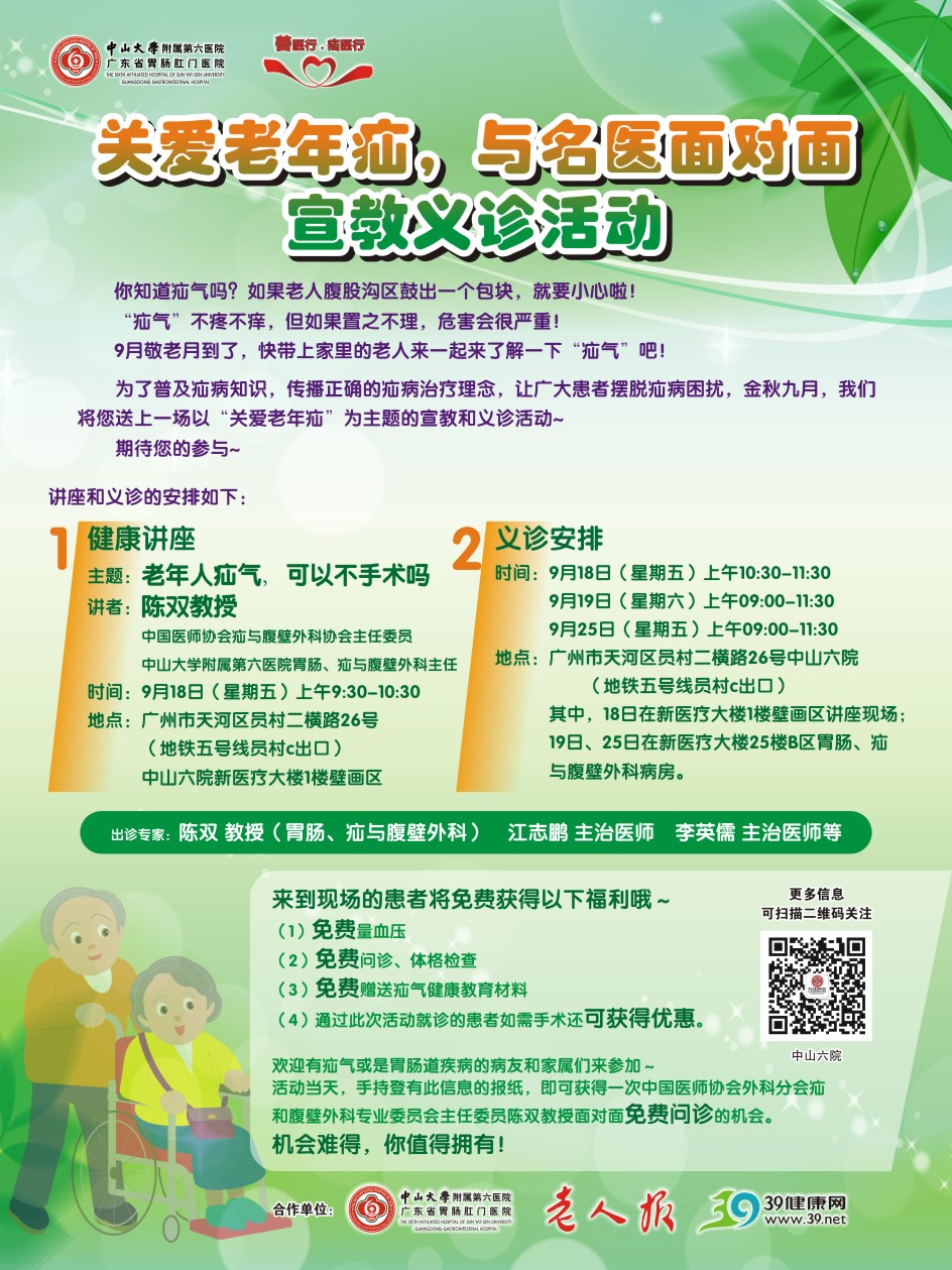 【义诊预告】关爱老年疝,与名医面对面宣教义诊活动 2015-09-09 医院公告 阅读: 上一篇: 【义诊预告】中山大学附属第六医院口腔科爱牙日义诊活动 下一篇: 【名医在线】第504期名医话你知,打鼾也是病