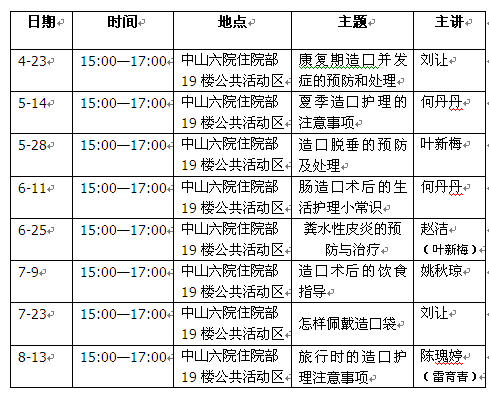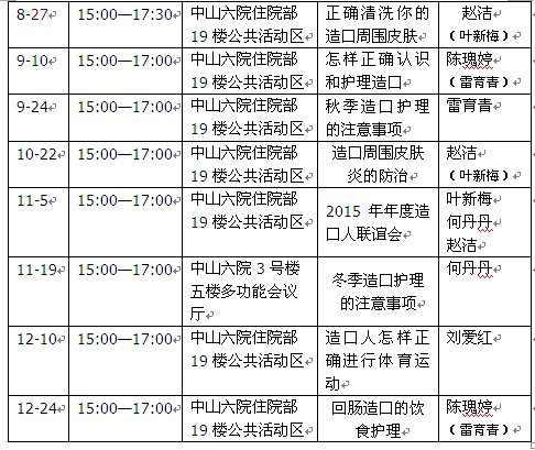 2015年造口人健康教育讲座安排