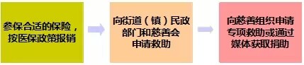 如果不幸罹患重大疾病,如何一步一步获取帮助?中六君在白皮书中看到,重疾援助可按医保报销、医疗救助、社会慈善力量三步走方为正道: