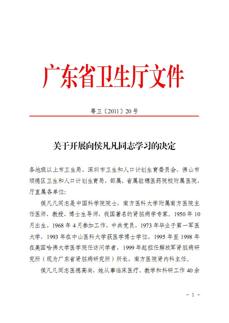 ——记中科院院士、广东省南方医院肾内科主任侯凡凡