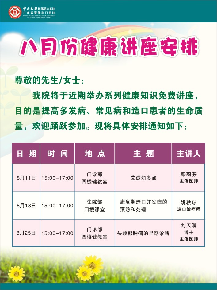 八月份健康讲座安排