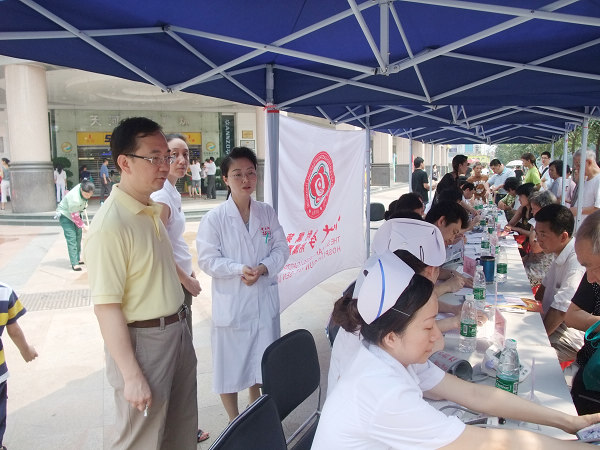 10点,太阳逐渐热辣了起来,树荫也起不了遮挡的作用,但来咨询的人们还是依然络绎不绝,专家们、工作人员们脸上的汗水擦了又擦。此时,医院党委汪中扬副书记的到场让大家的士气一再高涨。
