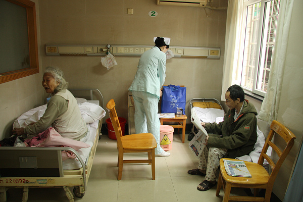 聋哑阿婆也住在医院