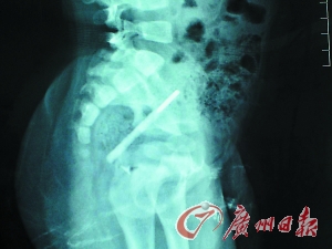 本报讯(记者涂端玉 通讯员简文杨摄影报道)“医生,麻烦快来看看我们家宝宝,他的体温计断在屁股里取不出来了……”日前,一对年轻的父母抱着一名不到两岁的婴儿焦急万分赶到了中山大学附属第六医院急诊科。专家百般小心才将近10cm的体温计从孩子肛管中取出。专家提醒:婴幼儿光屁股时间长,不止是体温计,异物入肛都机会多多,须提防注意。