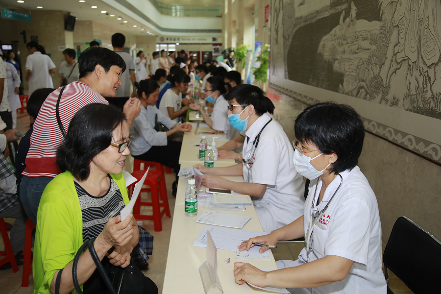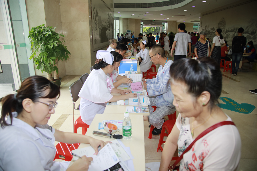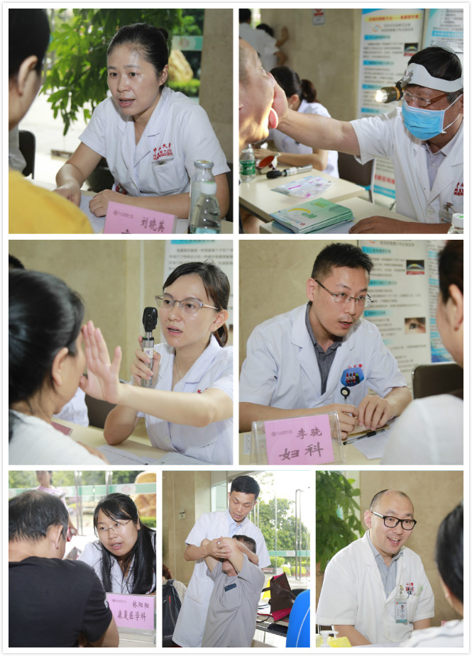 本次义诊活动分为两大部分同时进行。在一楼门诊大厅壁画区,由胃肠外科、耳鼻咽喉头颈外科、口腔科、内分泌科、心血管内科、皮肤科、康复医学科、眼科等18个学科组成的超强阵容专家团队为广大市民们免费提供了现场问询、专业问诊;二楼则是“爱眼日”义诊宣教活动现场,由我院眼科主任夏朝霞带领的专业眼科医护人员为民众免费提供了眼科保健、疾病咨询及体格检查、眼部护理常识。