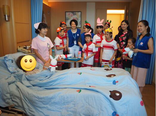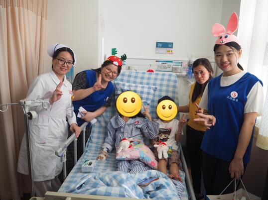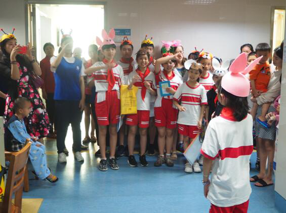 快闪结束,大家就分头进行探访活动,给患儿送去可爱的礼物与温暖的祝福卡片。员村小学的孩子们还特地准备了自己制作的小礼品,一幅充满春天气息的画、手工制作的纪念品等。临走时,患儿及家属都露出了愉悦的笑容,并对探访人员表示感谢。