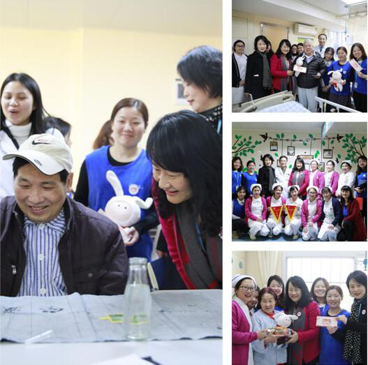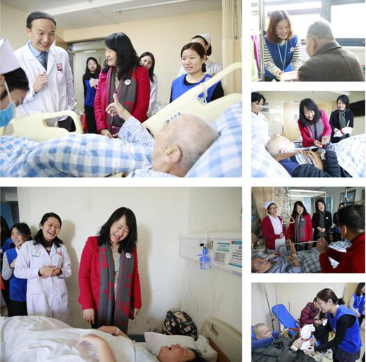 (医务社会工作暨志愿服务工作部讯)“五湖四海聚六院,祝愿无边;辞岁迎新更万象,春满人间”,2018年2月6日下午,在我院党委李汉荣书记、社工部张媛主任的带领下,志愿者们走进病房,走到患者身边,为住院的患者们送去真挚的新年祝福。