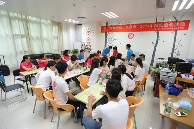 9月23日晚,志愿部特别策划了针对志愿者的中秋主题团队活动——“皂动中秋,义起来”志愿者手工皂制作活动。希望通过轻松、愉快的活动拉近志愿者们的距离,增加志愿者团队的归属感和凝聚力。另外,此次活动也邀请了院外志愿者团队共同参与,增加院内外志愿者的交流和情谊。
