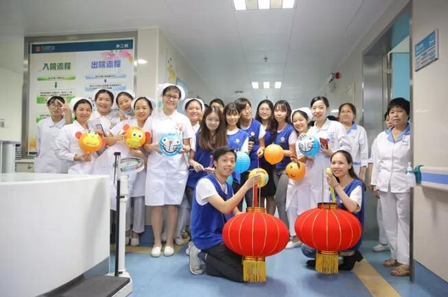 我院志愿服务工作的顺利开展,离不开临床科室的大力支持。志愿者们为每个科室准备了一个大大的红灯笼,探访我院的医护人员,也为他们送去最美好的中秋祝愿。