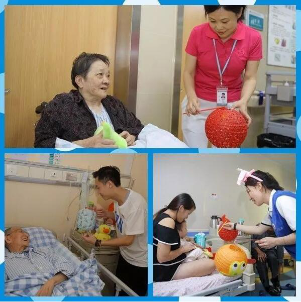 此外,志愿者们为病人送去了彩色的手工小灯笼,为病房增添了一丝丝温暖的色彩。值得一提的是,在儿科,志愿者们专程为小朋友们送去了可爱的公仔和头饰,小朋友们很开心,笑开了花,爸爸妈妈们纷纷致谢。