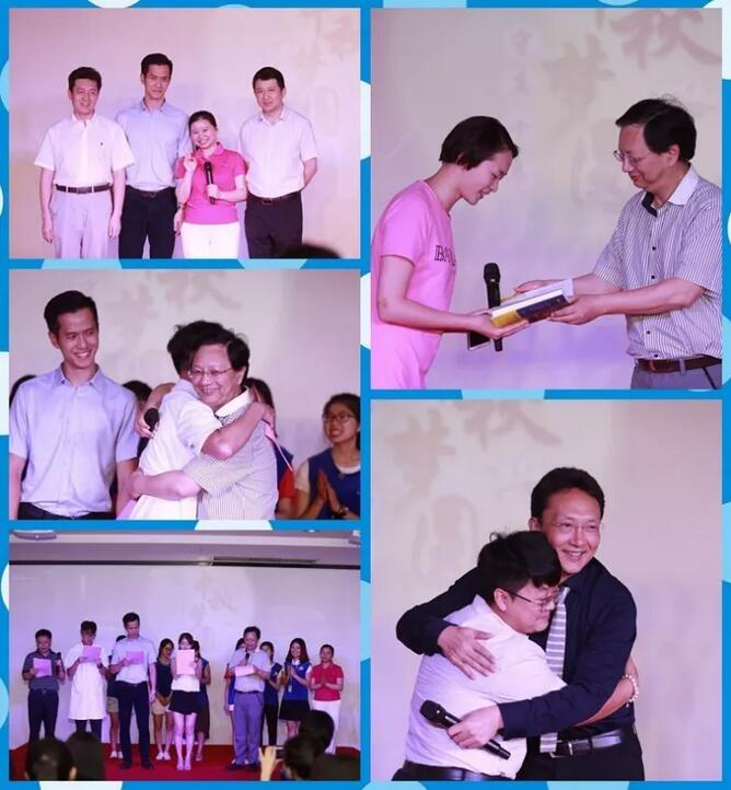 其中有一个梦想是想志愿部帮自己的孩子庆祝生日,只因夫妻俩都是医院的工作人员,平时工作忙碌,孩子生日当天也无法在家陪伴,希望志愿部能帮忙实现帮孩子过生日的愿望;有一位患者老伯为了表达自己对医务人员的感谢之情,现场用口琴表演一曲奏鸣曲,借由这首快乐的曲子向医务人员传递自己的感恩之意;还有一位患者更为直接,要到了让他“重获新生”的任东林教授的个人微信;一位物管人员专程上台对医院表示感谢,她三十年前是医院的护士,现在作为护工阿姨们的老师继续回来为医院服务,感叹这是缘分;一位科研助理成为幸运儿,她想要她的老师吴小剑副院长亲笔签名的教科书;另外一名研究生则得到了由汪建平教授亲笔签名的《外科学》教材;同样,一位护士也要到了几位院领导签名的书籍;也有一位姑娘大胆地想要跟自己心目中的男神——王磊副院长、向军副主任以及窦若虚医生合影和拥抱;还有一位正在实习的同学想要与兰平院长抱抱一分钟;还有一位年轻的护士则想跟院领导一起合唱院歌,这些统统都得到了实现。
