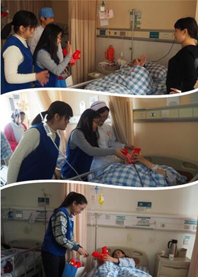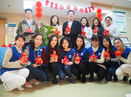 (医务志愿工作部 讯)吉鸡贺岁度佳节,快乐相伴庆新春,在新春佳节即将来临之际,为了给我院住院患者及其家属送上春节祝福与问候,1月23日上午,在护理部邓颖辉主任的带领下,医务志愿工作部组织志愿者一行前往病区开展“金鸡送福,乐迎新春”迎新年病区探访活动,此次活动携手临床10余个科室,为300余名患者及其家属送上了新年祝愿,营造了喜庆、和谐的节日氛围。探访活动的顺利举办还得到院长助理、医务部郭学峰主任,客服中心叶新梅主任以及各科室护长的共同参与和支持。