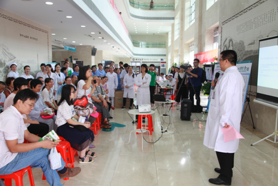 上午9点半,大型讲座义诊活动正式开始,由口腔科主任房思炼副教授主持,陈洁玉医师首先进行了口腔卫生保健知识讲座,重点对日常生活中大家不正确的洁牙护齿方式进行了纠正,在座群众听得格外认真。讲座后的有奖问答环节更是让现场气氛燃烧起来,医护人员与观众的互动不单单让气氛活跃起来,更重要是让观众详记讲座的核心内容——口腔健康,全身健康。