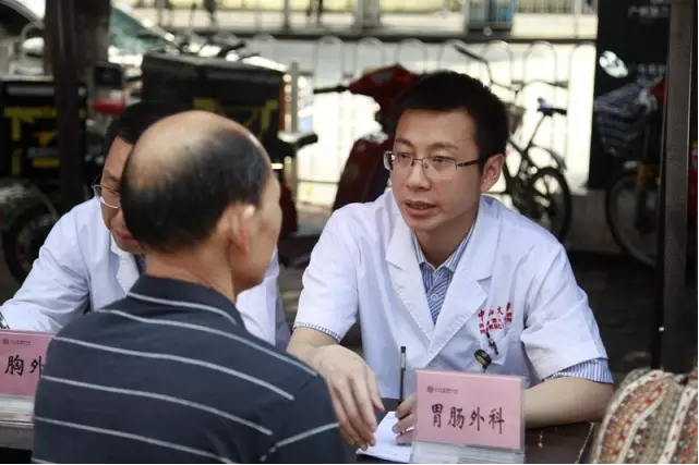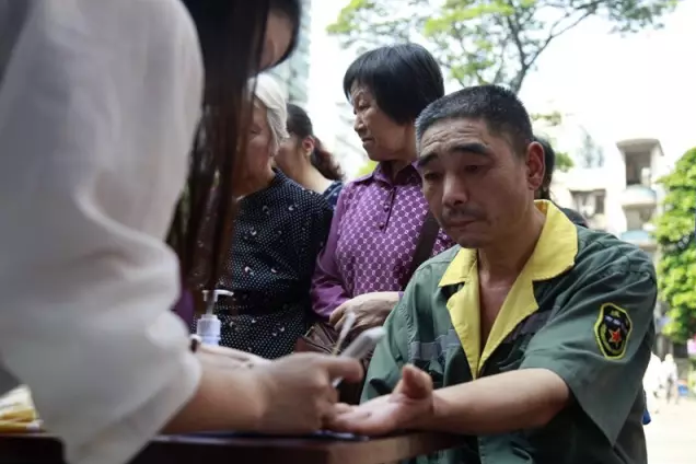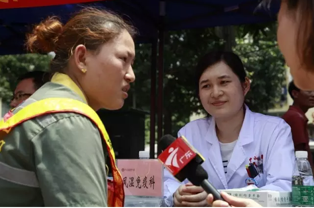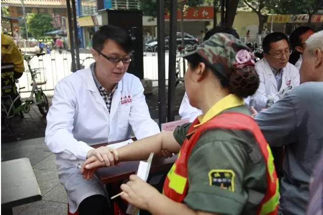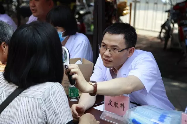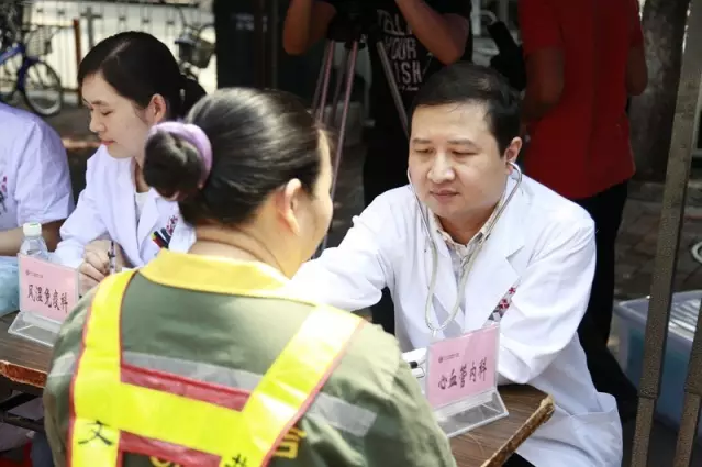 义诊现场,来自我院胃肠外科、心血管内科、康复医学科、皮肤科、口腔科、中医科、妇科、风湿免疫科、胸外科、骨科、小儿外科等多个学科的医生参与进来,为环卫工人进行常规检查、测血糖、量血压等项目。此次活动发起部门,中山六院博士志愿者服务团副团长、团委书记何晓生表示,在活动开始前,他们在群里事先进行了义诊医师的征集活动,反响十分强烈。比如小儿外科颜禄斌副主任专门请缨不仅要关注环卫工人,也要关注环卫工人下一代的健康,皮肤科吴良才主任甚至专门停诊半天前来参加此次活动。