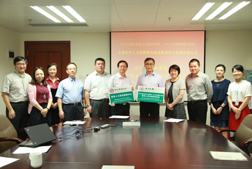 10月21日上午,我院、中山大学社会学与人类学学院共建医学人文科研教学基地暨我院医学人文研究教育中心签约及揭牌仪式在我院1号楼29楼会议室1正式举行。我院领导与社人院教授共同出席仪式,列席的还有我院医务志愿工作部工作人员及学生代表,他们共同见证了这值得纪念的时刻。