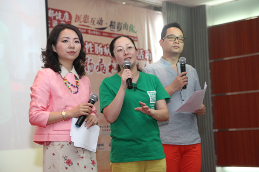 本次公益活动由南方生活广播知名主持人林欣、林炜栋主持。活动分炎症性肠病专题片观赏、IBD健康知识讲座、患友交流和咨询三个环节进行。首先专题片讲述了世界炎症性肠病日的来历和意义,介绍了中山六院多学科协作团队诊治IBD疑难病人的优势以及每个IBD患者必须应该注意的关键性问题,还讲解了IBD用药选择、饮食和营养知识。该院消化内科副主任郅敏副教授为大家带来题为《常在心——一起战胜炎症性肠病》讲座,讲课深入浅出,图文并茂,现场阵阵掌声,受到参会患者和家属一致好评。最为感人的是患友交流环节,患者小兰和阿锋(均为化名)分别登台用亲身经历向患友们讲述了他们与IBD一路“相伴”,直至回归社会的心路历程,分享了求医治病的经验和教训,辛酸之处催人泪下。最后活动主办方还专门为大家进行了现场咨询,从诊疗、护理、用药等多方面为IBD患者答疑解惑。整个现场充满爱的同时也专递着积极乐观面对疾病的正能量,一位病友现场为郅敏献唱《感恩的心》,更是博得现场观众喝彩连连。各环节之间还穿插现场互动——问题抢答,答对者还获得精美礼物一份。