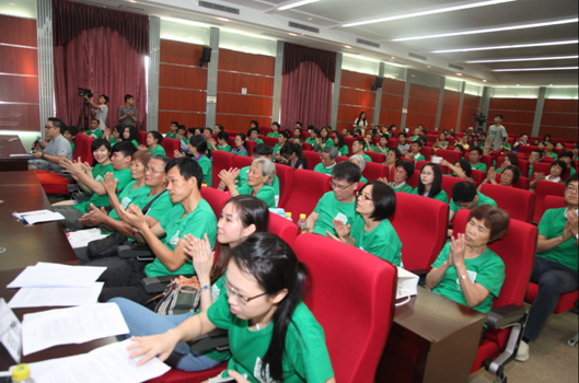 远近赶来的新老炎症性肠病患者以及对此病感兴趣的民众150余人与我院IBD团队医生护士聚集一堂,学习交流如何战胜炎症性肠病这个顽疾的体会。主办方还贴心的为观众专门准备了统一的“常在心”绿色T恤,让场面更加温暖有序。