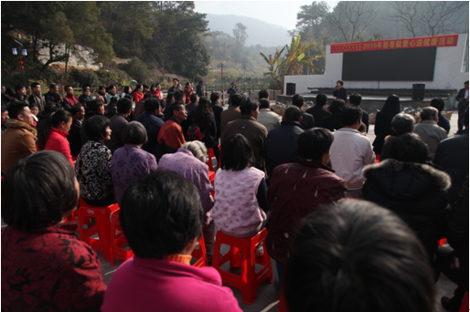 (拓展宣传办 讯)2月11-12日,“2015年新春献爱心送健康活动”在梅州大埔县枫朗镇坎下村进行,此次活动由广东省机构编制委员会办公室、广东省扶贫开发协会与我院联合开展。根据当地居民卫生健康情况,我院组织专家面向村民群众开展义诊义检,赠医送药活动,现场把脉问诊,普及健康知识和疾病预防知识,并为村级卫生站品配送部分常用医疗器械。广东省编制办潘享清主任、广东省扶贫协会钟韶彬常务副秘书长一再称赞我院医疗队“不远千里送爱心,尽显白求恩精神”。