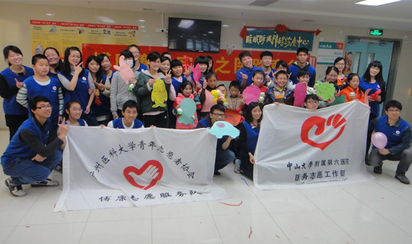 广医学子进医院,关怀患儿送温暖!“医路童行”是为住院患儿设计的公益服务项目,本期活动由志愿部与广州医科大学博康服务队的同学们共同举办。活动分18、19日两场,分别在志愿部和15楼病人活动区进行,内容包括讲故事、橡皮泥手工、绘画、折气球、做游戏等多种方式,活动中,志愿者和孩子们欢乐互动,欢笑不断。此次活动在一定程度上缓解了患儿对疾病治疗的恐惧,得到了患儿家长们的好评和认可。