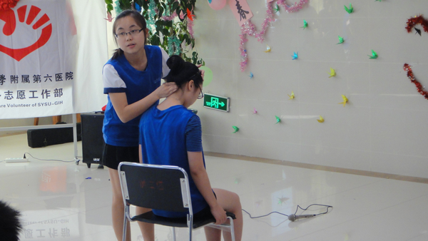 在前期的积极策划组织下,病区的患者们早早就在观众席上等待表演的开始。活动在下午3点一曲《春暖花开》中拉开了序幕。参加表演的青年志愿者有护理学院2011级和2012级的同学,同学们多才多艺,可谓十八般武艺层出不穷,小提琴、吉他、二胡等多种乐器齐上阵,现场气氛异常欢乐。志愿者们还为患者们进行了常用穴位按摩的现场小培训。而洪苏今老师——我院最年长医务志愿者的现身说法更是把活动推向了高潮,她向在座的人们讲述了她顽强与病魔作战的过程,从检查出癌症开始,6年4次手术,每天不间断的药物治疗,她仍然保持乐观的态度。如今,她每天坚持学习6个小时,早上6点还起床背英语。她用她的亲身经历告诉所有人,要相信科学,相信技术,相信医生,抱着乐观的态度去面对病魔,面对生命,就能活得开心快乐!