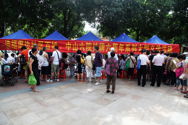 (党政办 讯)6月6日,是中山大学附属第六医院挂牌六周年纪念日。我院面向广大百姓,力求真正实现便民利民、服务社会大众,展现我院的学科力量、文化传统,6月6日上午,我院在附近的天河都市广场举行了造福周边社区老百姓·中山六院挂牌六周年系列义诊活动。
