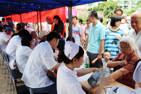 义诊从上午9点30分开始,11点30分结束,天公作美,天气较为阴凉,使得义诊工作受到更多的关注,不一会各个位置前都排满了前来咨询的群众。据统计,包括胃肠外科、消化内科内分泌科、风湿科、妇产科、儿科、耳鼻咽喉头颈外科、口腔科、睡眠专科等多个学科专家共同出动,接诊群众154人次,测血压196人次,测血糖213人次。