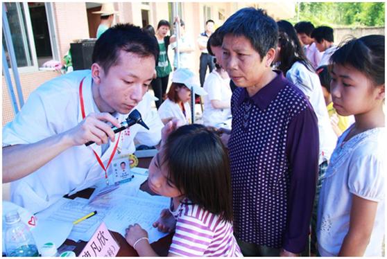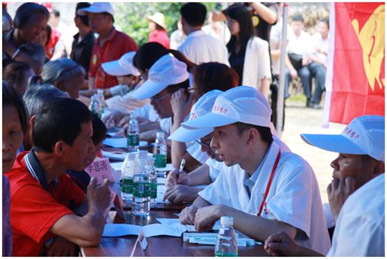 (医务志愿工作部 讯)盛夏七月,为响应团省委、省卫生厅、省扶贫办、省志愿者联合会等单位的号召,配合“幸福广东·健康同行”活动,我院与碧桂园集团、广宁县排沙镇政府等单位,走进肇庆市广宁县排沙镇八一村,共同开展了广东青年医疗卫生志愿者扶贫济困健康直通车行动。