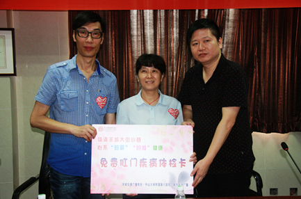 陈石副总监和周兵副总监为的姐代表送上免费体检卡
