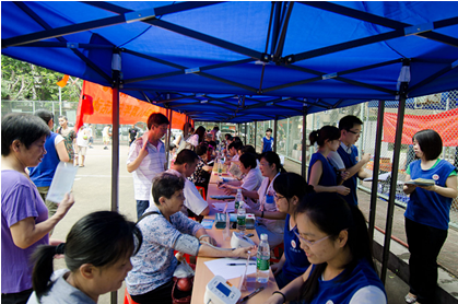 义诊现场提供医疗义诊、病情咨询、用药指导、血压测量等服务。医务志愿者们向往来居民派发宣传资料,并引导他们到有关专家处咨询。不少社区居民都是我院的常客,特别是老年人,他们看到现场相熟的专家立刻上前寒暄一番,向专家们诉说对身体情况的疑惑,居民和专家在义诊现场 “打成一片”。