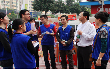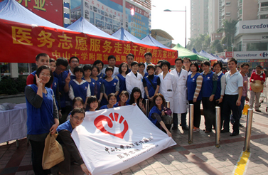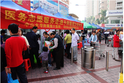 (医务志愿工作部 讯) 为积极响应卫生部和中国医院协会共同举办的“医务志愿服务进千所医院万家社区暨中国医院协会医院社会工作暨志愿服务工作委员会成立大会”精神,进一步推广我院医务志愿工作,在第25个国际志愿者日来临之际,12月5日上午,由我院医务志愿部联合组织护理部、团委、社区中心等多个科室,在员村山顶家乐福广场举行了主题为“医务志愿服务进千所医院万家社区”的大型义诊活动,为周边居民提供免费义诊服务。