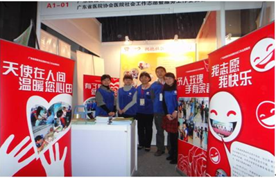 我院与中山大学肿瘤防治中心、番禺中心医院等医院作为广东省医院协会医院社会工作暨志愿服务工作委员会的代表列为参展单位之一,参展项目为“志愿服务进医院、携手医患献爱心”,展示于医疗卫生展区中。大家把本单位开展医疗志愿服务的情况,用KT板、易拉宝及画册等形式图文并茂地展现。现场到处洋溢着热烈的气氛,社会组织参与社会服务的热情高涨,展位前挤满了前来参观、咨询的人,展示的项目也得到了大家的认同及好评。通过介绍和沟通,最终我院医务志愿工作部获羊城基金协会赞助1万元,基金会在肯定我院取得成绩的同时,并表示对我们志愿服务的强烈支持。