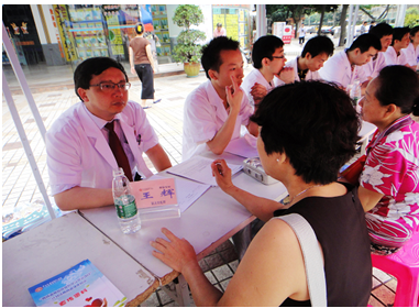 (医务志愿工作部 讯)为配合医院民主评议行风工作中“三好一满意”要求,提倡便民惠民,同时根据中国医师协会倡议的“医务志愿服务进千所医院万家社区”的精神,为了增强医院周边社区居民的健康意识,并配合街道同创国家文明城市活动。 6月11日,由我院门诊办牵头,医务志愿工作部组织包括胃肠专科、内科、外科、妇产科、康复科、耳鼻喉科等专科在内的医护人员作为医务志愿者组走进华景新城社区,服务内容包括免费为社区居民进行血压测量,血糖测量,派发大量健康知识宣传册子,旨在为小区居民带去健康服务和人文关怀。