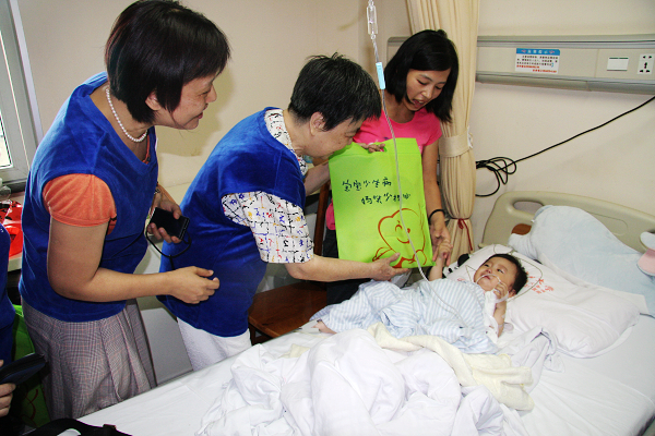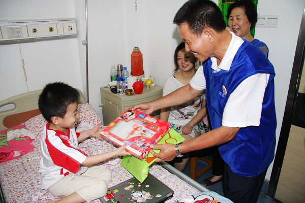 志愿者们为住院小朋友们精心准备了小礼物,每到一处都齐声祝小朋友身体早日康复,场面十分的温馨感人。不管是还只能躺在床上的,还是已经可以坐起来的,小朋友们打开礼品袋后看到礼物时,欣喜地表情都无一不让人感动,他们展露出来的笑颜是对志愿者工作的最好反馈,而小朋友他们和家长们简单的一句“谢谢”驱散了那一抹炎热的感觉。一路上,不管是行人还是医务工作人员,都给医务志愿者们投以赞许的笑容和肯定的眼神,