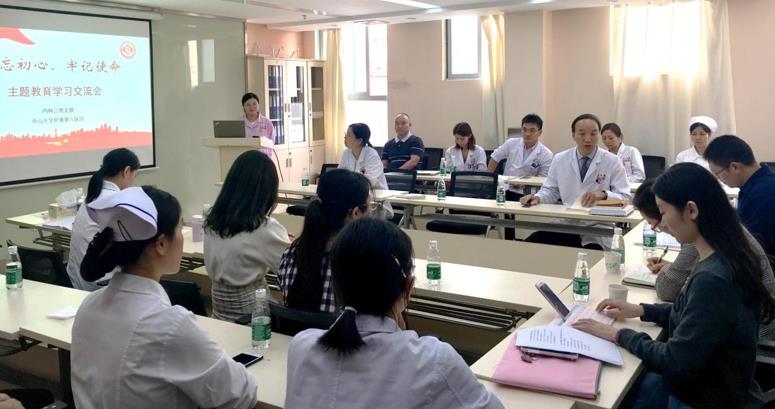 习近平总书记在十九大报告中提出要实施健康中国战略,“把人民健康放在优先发展的战略地位”。内科二党支部主题教育学习会上,支部书记王于领主任治疗师用一张张老照片带领青年党员回顾了医院以“胃肠强院扬名中华,学科齐全福祉当地”为己任,用六院速度不断刷新六院奇迹的艰苦奋斗历程;外科二党支部书记陈双教授从一名老党员的角度,和党员们分享要时刻牢记“健康所系、性命相托”的医者初心与使命,不断提高自身技术水平,端正医德医风师德师风,更好地践行“为人民服务”的宗旨。