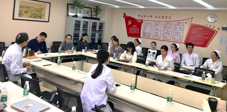 在参加完党支部主题教育交流会后,大学第三巡回指导组副组长敖勇对内科二党支部和外科二党支部的学习活动形式表示高度赞赏,并鼓励各支部以此为示范,多开展形式多、活力足的组织生活,注重“身边人”讲述“身边事”,“身边事”感动“身边人”,充分发挥先进典型的引领作用,丰富主题教育党员群众学习的内容和形式,鼓励青年党员主动投身医疗扶贫等公益活动,立足岗位做贡献,让群众切实感受到主题教育带来的新变化新成效。